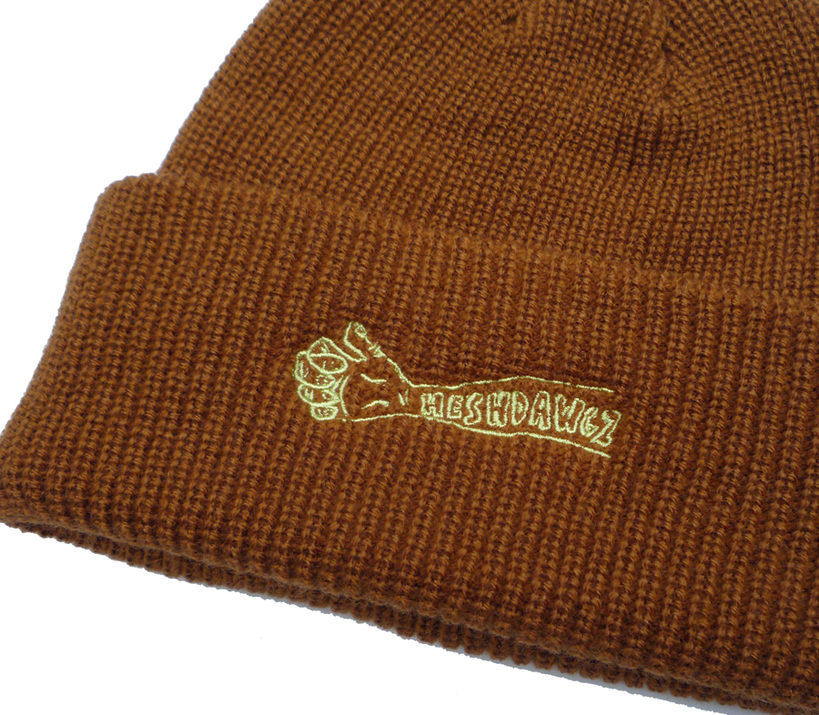 HESHDAWGZ x RUSS POPE ARM LOGO EMBROIDERY CUFF BEANIE ビーニー ニットキャップ ヘッシュドウグズ ラスポープ